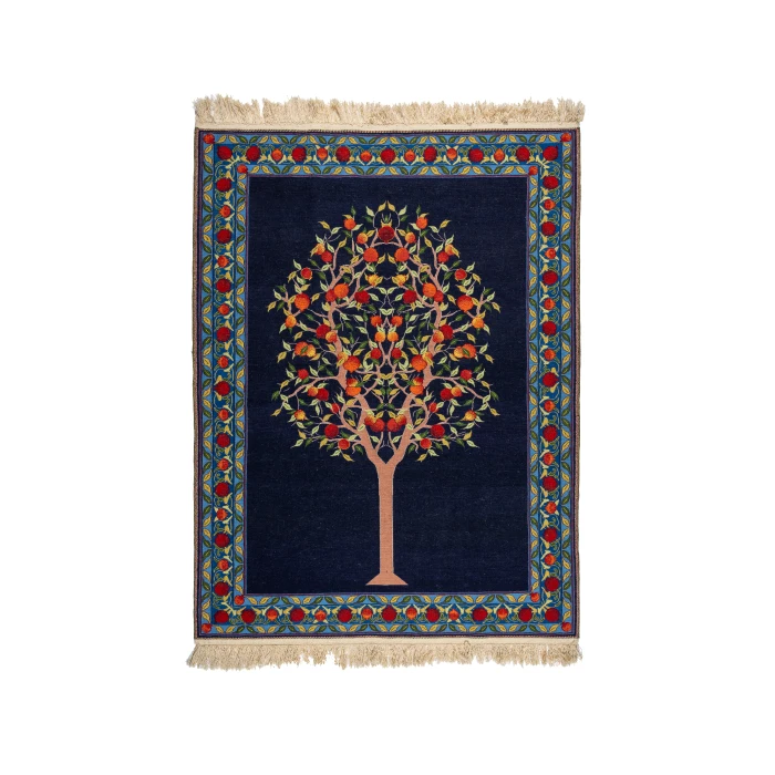 This handwoven navy tree pattern kilim is a beautiful expression of Persian craftsmanship, designed to symbolize growth, life, and connection to nature. The tree motif, deeply rooted in Persian culture, represents vitality and continuity, while the natural navy tones add depth and elegance to its design.