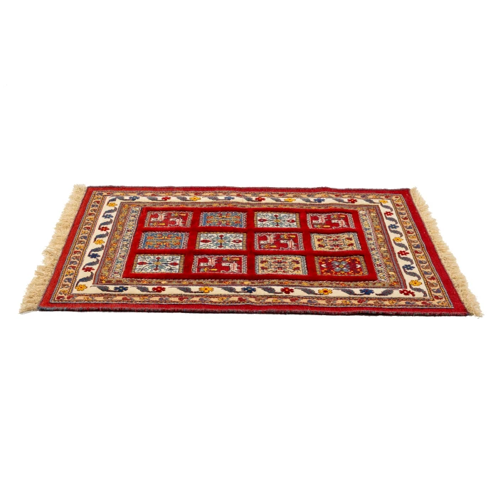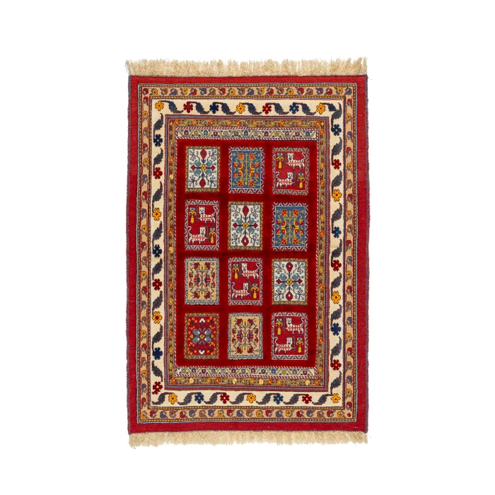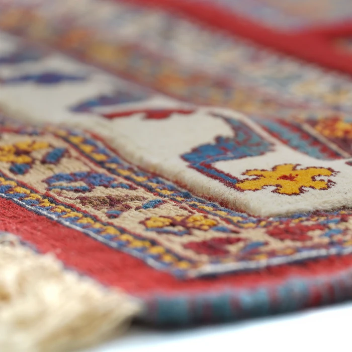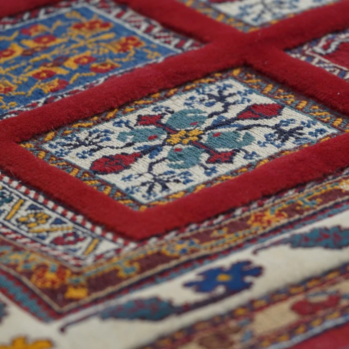 The bold red tones symbolize vitality and warmth, while the soft cream outer border adds harmony and contrast, highlighting the rug’s structure. By blending the durability of kilim with the sophistication of carpet weaving, this piece stands out as both practical and artistically distinctive.